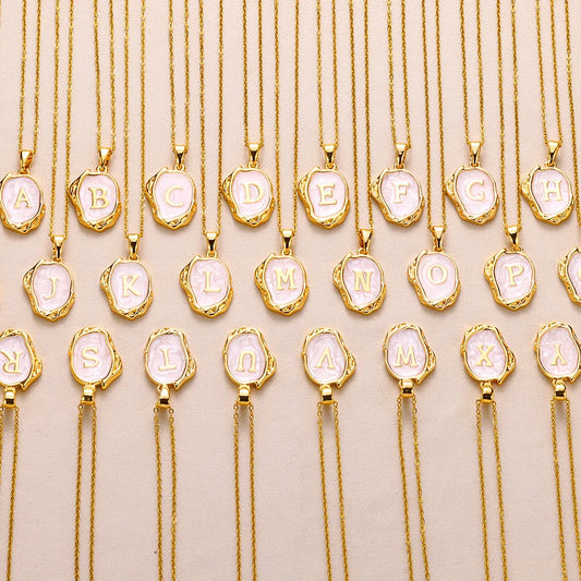 Collar océano con iniciales dorado de 18 quilates en el fondo marino