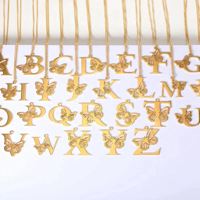 Cadena de iniciales dorada de 18 quilates con elegante mariposa
