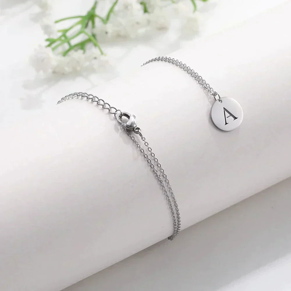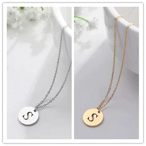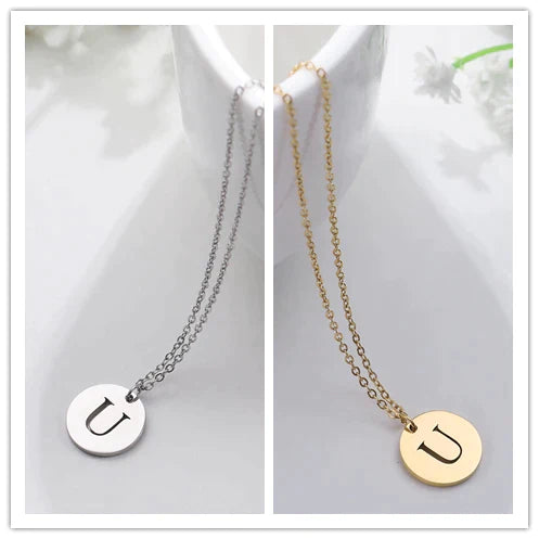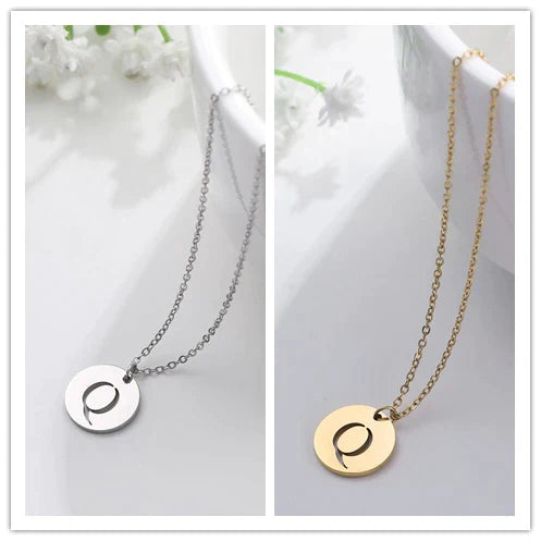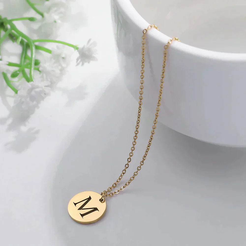 Collar con iniciales grabadas en círculo moderno, dorado de 18 quilates