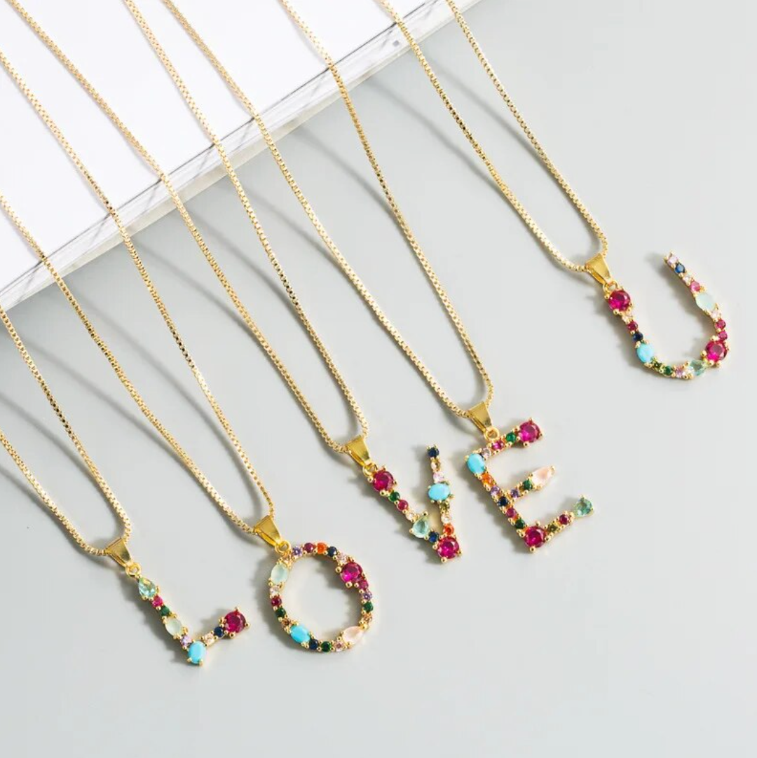 Collar con iniciales y piedras preciosas doradas de 18 quilates